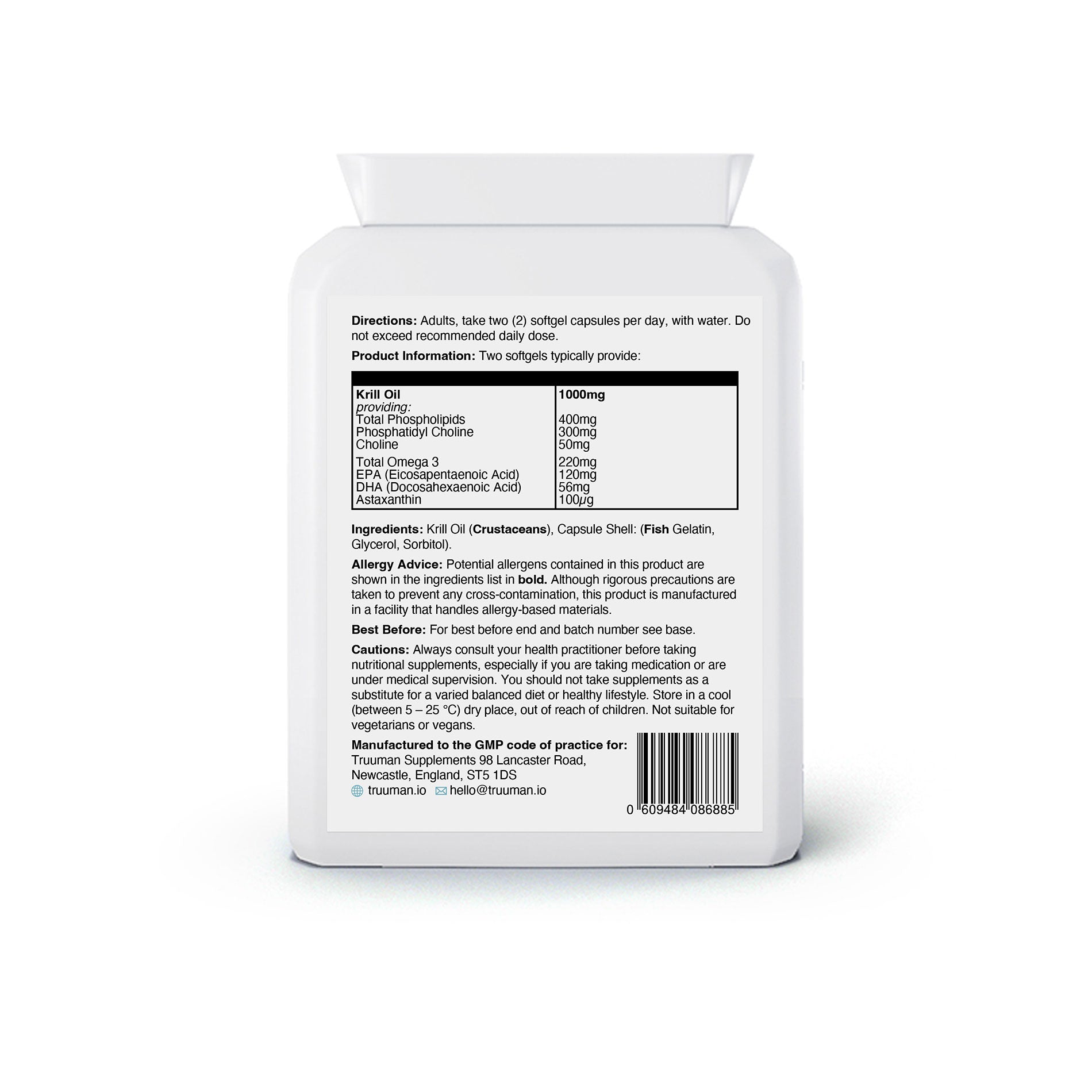 Joint support, brain fuel, heart health — all in one. Truuman Natural Krill Oil delivers highly absorbable Omega-3 fatty acids plus antioxidants for reduced inflammation, better cognitive function, and improved recovery.